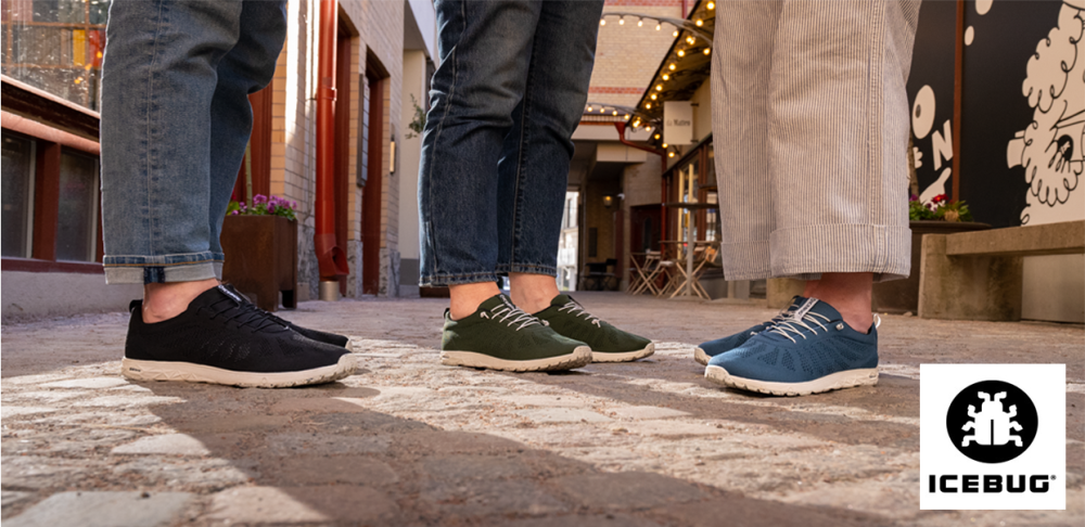 Icebug startade en egen kategori skor - de dubbade skorna som håller folk på fötterna vid halt vinterväglag. Sedan 2001 har de räddat människor från vinternstans största problem – halkan. Sortimentet idag består inte bara av dubbade skor och kängor utan också löparskor med bra grepp i naturen, fina promenadskor och varma vinterkängor utan dubbar. Icebug är också världens första klimatpositiva tillverkare av outdoorskor.