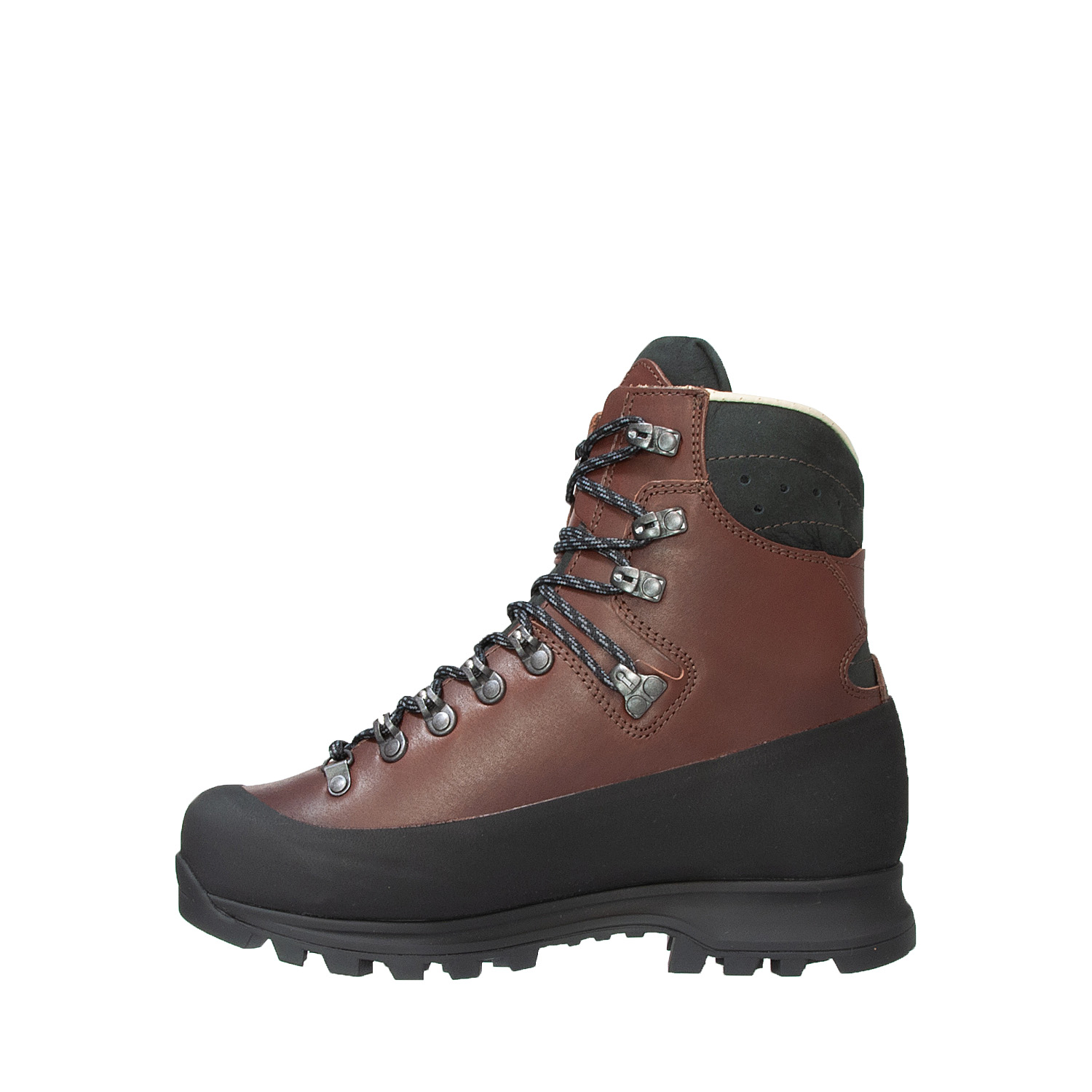 Det här är en känga för riktigt tuffa turer med tung packning. Ovandelen är tillverkad i ett kraftigt Heinen Terracare-läder (2,4 mm) och är designad i princip i ett enda stycke. Bara bak i hälen har man skarvat för att få till en riktigt optimal passform. Det här gör att kängan är i det närmaste sömlös vilket eliminerar många annars svaga punkter. Längst ned mot sulan löper en kraftig, hög gummirand som skyddar lädret i otillgänglig och stenig terräng. Plös och skaftavslut är tillverkade i en smidig nubuck. Mellansulan i polyurethan har ett extra förstärkningsskikt av 0,2 mm TPU som skyddar mot hydrolys (åldringsproblematiken som finns på alla kängor där PU smulas sönder om vattenmolekyler tillsätts och sulan riskerar att lossna från ovandelen). Snörningen löper på framfoten genom en öljett, fyra kullagerförsedda hakar och på skaftet snörs kängan åt med ytterligare fyra kraftiga, öppna hakar. Yttersulan, Vibram Fouraska, är mycket lätt och har ett fantastiskt grepp. Innersulan är tillverkad i skönt, kromfritt garvat läder och skapar ett behagligt fotklimat (självklart kan den bytas ut mot egna fotbäddar). Det här är en vän på dina tuffa turer för många år framöver! Kängan är bred till normalbred. Som alla kängor i kraftigt fullnarvigt skinn bör du ge dig själv tid att gå in dem - de är som sämst när de är nya och blir bara bättre och bättre med tiden! I början kan du smörja dem en eller ett par gånger med en mjukgörande smorning för att skynda på uppmjukningen av dem - därefter är skötselrådet att hålla dem rena genom att tvätta av dem med ljummet vatten och sedan vaxa dem.