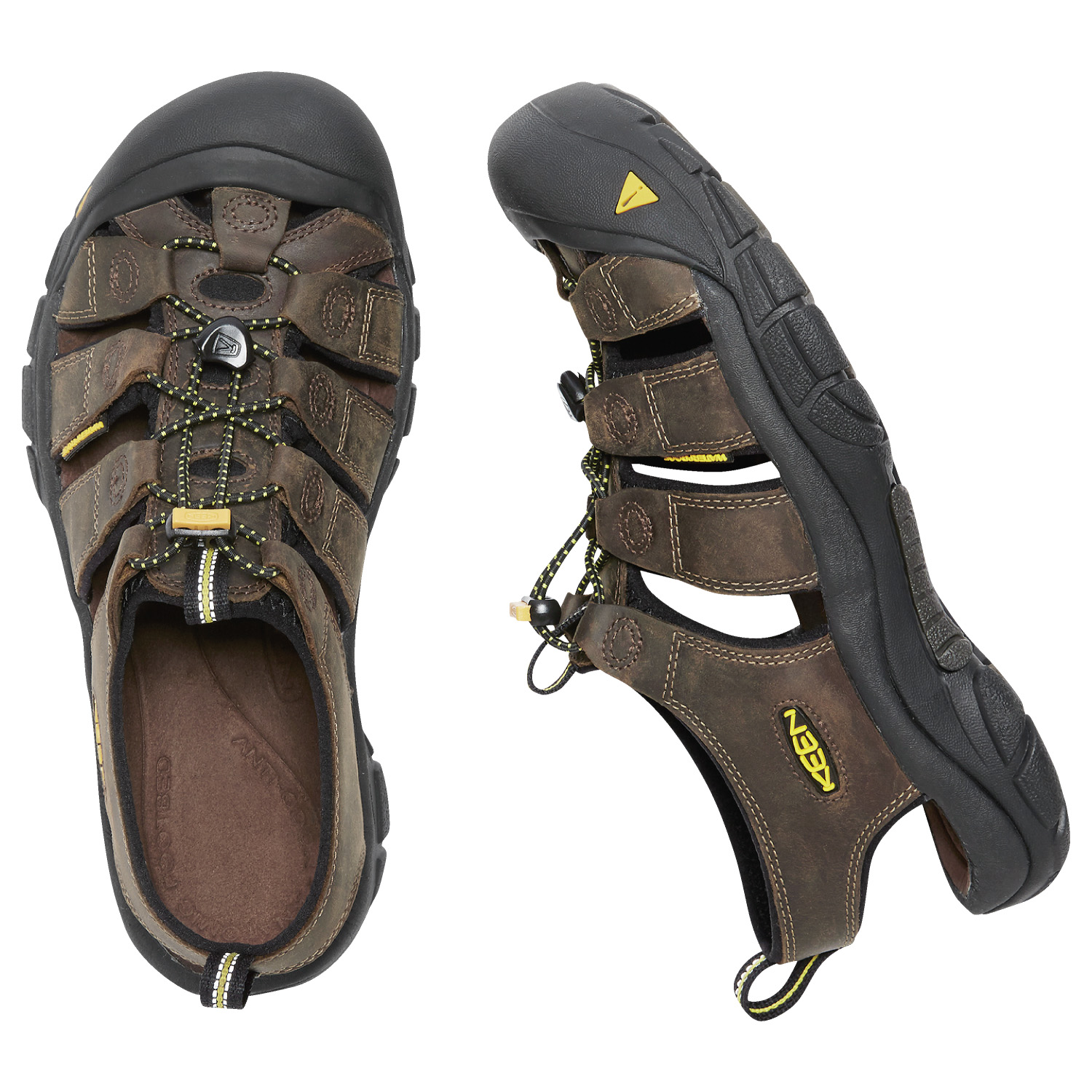 Keen Newport är välventilerad, har en bra passform för den lite bredare foten och är utrustad med en sula som är skön att gå på – perfekt för äventyr både i vatten och på torra land. Ovandelens läderremmar är fodrade med ett hydrofobiskt och mjukt material som är bekvämt, torkar snabbt och är hållbart. Dragögla med reflexband i bakkappan gör sandalen lätt att sätta på och den elastiska snörningen med snabblås håller foten på plats. Det patenterade tåskyddet skyddar tårna. Fotbädden i syntetisk mocka är skön mot huden och den anatomiskt formade sulan har bra stötupptagande förmåga. Yttersulan är non-marking och greppar utmärkt även på våta underlag. Alla Keens sandaler kan tvättas i maskin - inklusive de med läder i ovandelen. Använd mycket lite tvättmedel, tvätta på ett milt program utan centrifugering och låt lufttorka. Eller tvätta för hand - det går såklart lika bra.