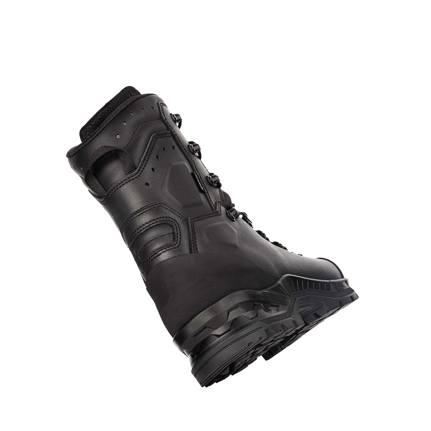 LOWAs prestanda, komfort och innovativa design inom segmentet Task Force, som ursprungligen utvecklats för Brittish Special Forces, har bevisat sig om och om igen, i världens mest krävande förhållanden. Lowa Combat MK2 Gtx är den nya generationen stridskänga som passar lika bra till yrkesgrupper som polis, militär och väktare som till jägaren och vandraren som söker smidighet i en hög känga. Den har en mellansula i PU som är lätt, dämpande och flexibel men samtidigt bidrar till god stabilitet - alltså en hög komfort under långa turer. Ovandelen i slitstarkt läder har ett speciellt pigment (LOWA® RAYFLECT) som reflekterar en del av solens värmestrålning och förhindrar överdriven värme - något som annars kan vara ett problem med klassiska svarta kängor. Detta gör det något behagligare att vistas ute under varma sommardagar. Med det sagt så är vattentäta kängor alltid lite varma men Lowa har gjort ett försök att tackla problemet med Rayflect-teknologin. Tå- och hälparti är extra förstärkta med gummi och vid hälsenan finns en extra mjuk flexpunkt. Eftersom kängan i första hand är tänkt för yrkesmilitärer löper snörningen genom slutna hakar - den sista innan vristen har dessutom en låsfunktion för att man ska kunna snöra olika hårt över framfoten och vristen. Invändigt är Lowa Combat MK2 GTX fodrad med textil och Gore-Tex Comfort för att hålla dig torr från den utvändiga vätan. Yttersulan, Vibram® Vanguard, har bra grepp på de flesta underlag och är även resistent mot olja, bensin och värme. Kängan har en speciell läst anpassad för kvinnors anatomi vilket innebär anpassningar runt hälben och i framfot. Kängan är omsulningsbar. Kom ihåg att sköta dina kängor - tvätta av dem med ljummet vatten utvändigt och vaxa dem regelbundet. Vanligt skovax fungerar bra men är du i behov att bibehålla en jämn, svart färg rekommenderar vi ett svart vax. .