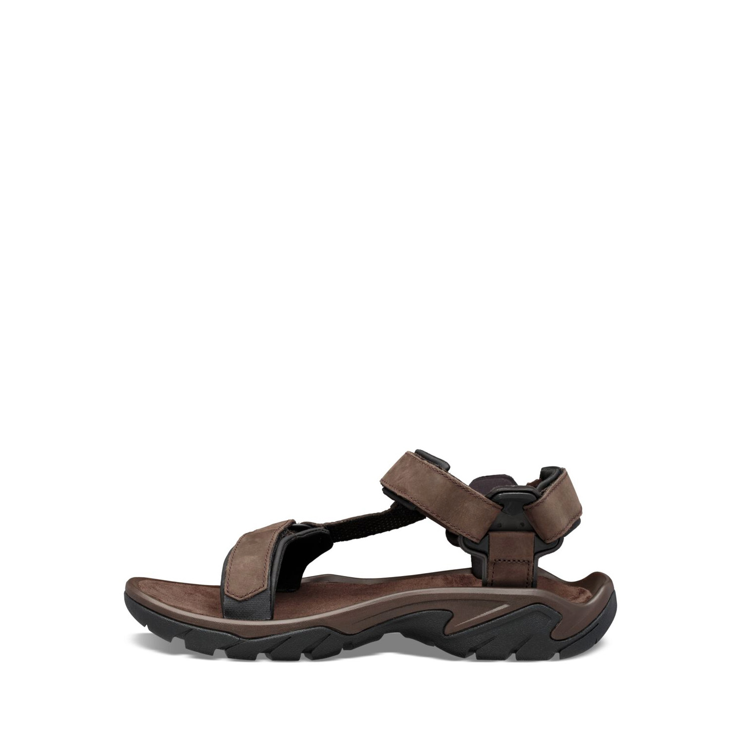 Teva Terra Fi 5 Universal Leather är 5:e generationen av den här superpopulära vandringssandalen - fast med läderremmar istället för de klassiska i nylon. Terra Fi är designad för dig som vill ha stöd och dämpning under långa dagar till fots i både blöt och torr terräng. Mellansulan är tillverkad i en blandning av lätt och dämpande EVA samt stabiliserande PU som håller form och spänst länge. I hålfoten finns en extra stabiliserande gelänk och i hälen extra dämpning. Yttersulan i gummi har partier i hårdare, slitstarkare material medan andra är i mjukare gummi med extra bra friktion - allt för att ge ett så bra och samtidigt slitstarkt grepp som möjligt. Remsystemet är i princip samma som på alla föregångare - ett justerbart trepunktssystem som göra att du kan lätta eller spänna över framfoten, vristen och vid hälen. Terra Fi är perfekt för dig som söker långvarigt stöd och komfort i vardagen, på resa, i terräng. Ta med ett par på vandringen för vad och som lägersandal - det här är verkligen sandalernas sandal!